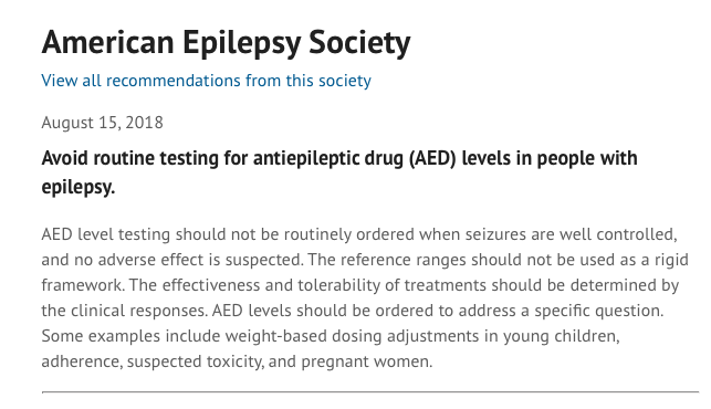 てんかん患者では、抗てんかん薬の血中濃度のルーチンな検査は避ける[Choosing wisely]